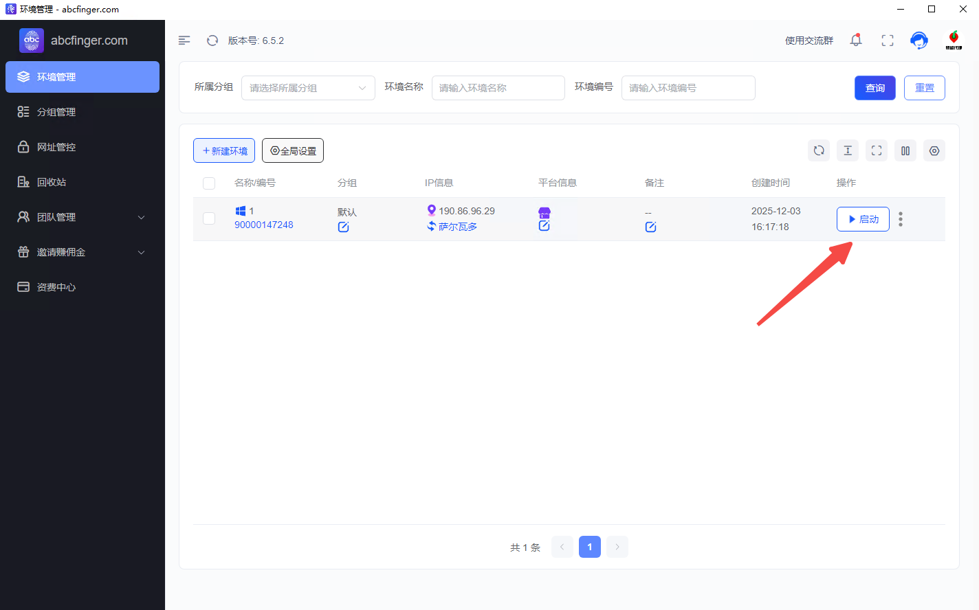 保存环境后,点击 启动 按钮,启动的浏览器网络环境网络即为您设置的代理网络。