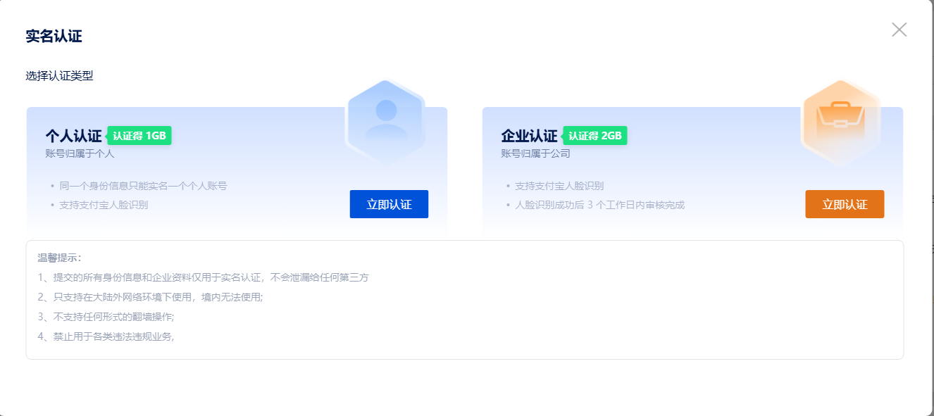 完成实名认证,个人用户可以免费获得1GB海外动态住宅代理,企业用户凭借营业执照可以免费获取2GB的海外动态住宅代理。