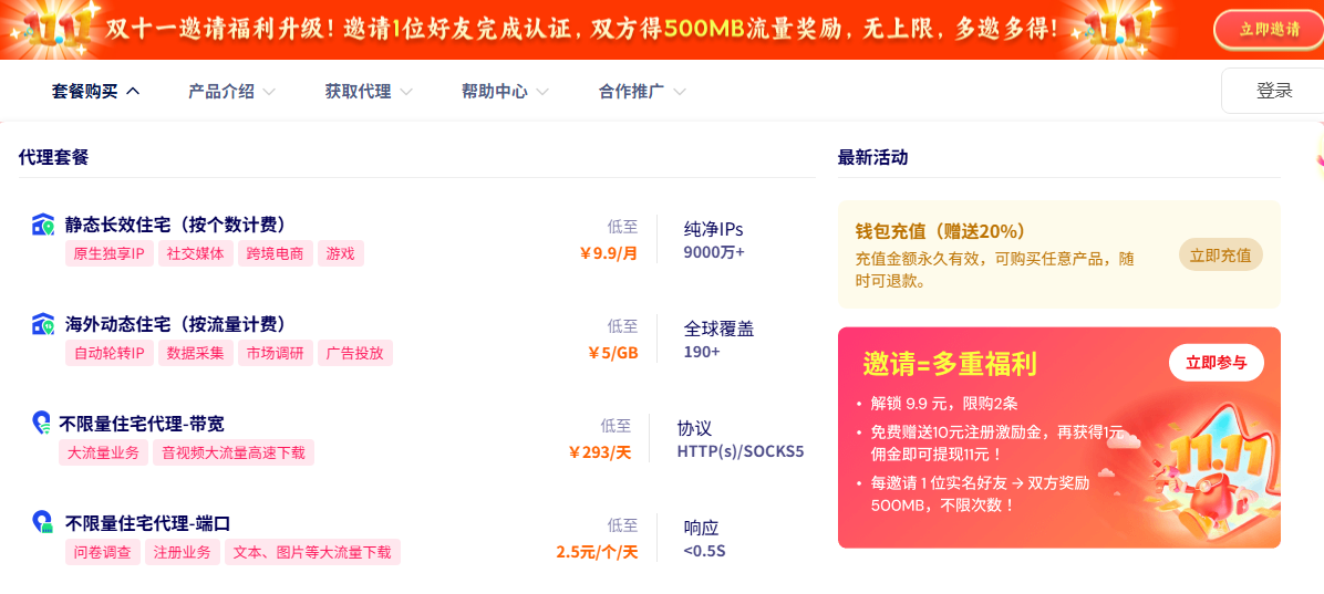 当前通过邀请码:lajiao666 登录注册辣椒HTTP,可以获取限时优惠1.5GB的海外住宅代理和63.5元用户专属大礼包!