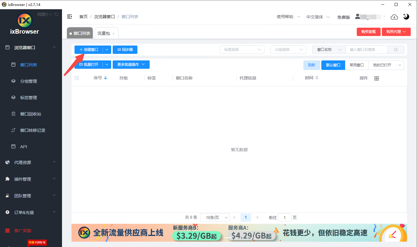 官网地址:https://ixbrowser.com/web/download,到官网地址下载最新版本客户端,安装完成后,登录账号进入ixbrowser客户端主界面。