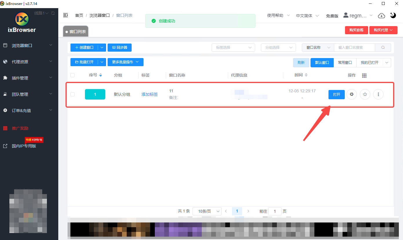 可以查看到新建了一个指纹浏览器窗口,点击打开就可以开始在代理环境下使用了。