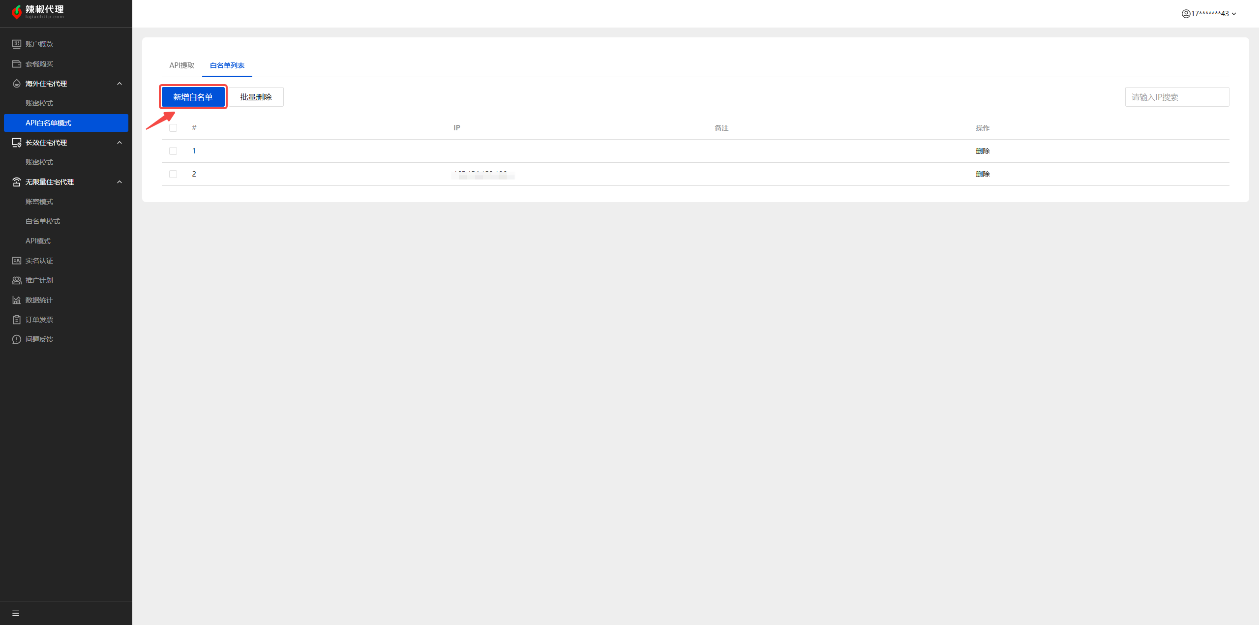 白名单模式(IP Whitelist Auth)是一种通过绑定你的“当前网络 IP”来获得访问权限的机制。只要你的 IP 在白名单内,使用代理时就不再需要输入用户名和密码。
