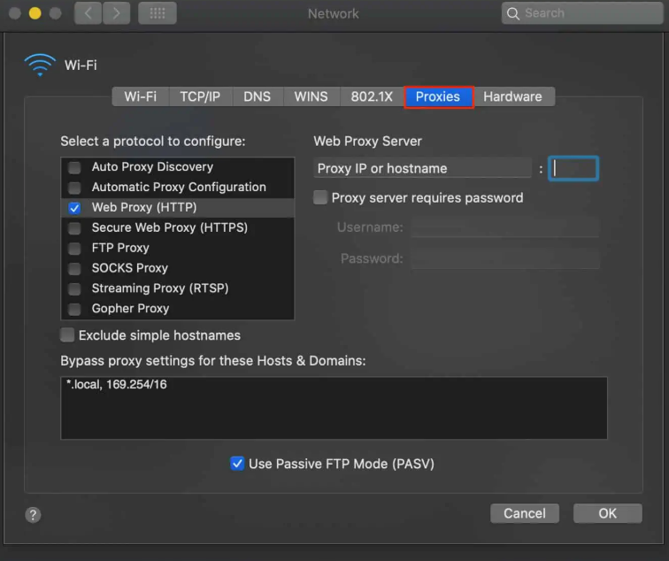 在代理板块(Proxies)填写主机名:端口并勾选【proxy sever requires password】填写账号密码等信息。
