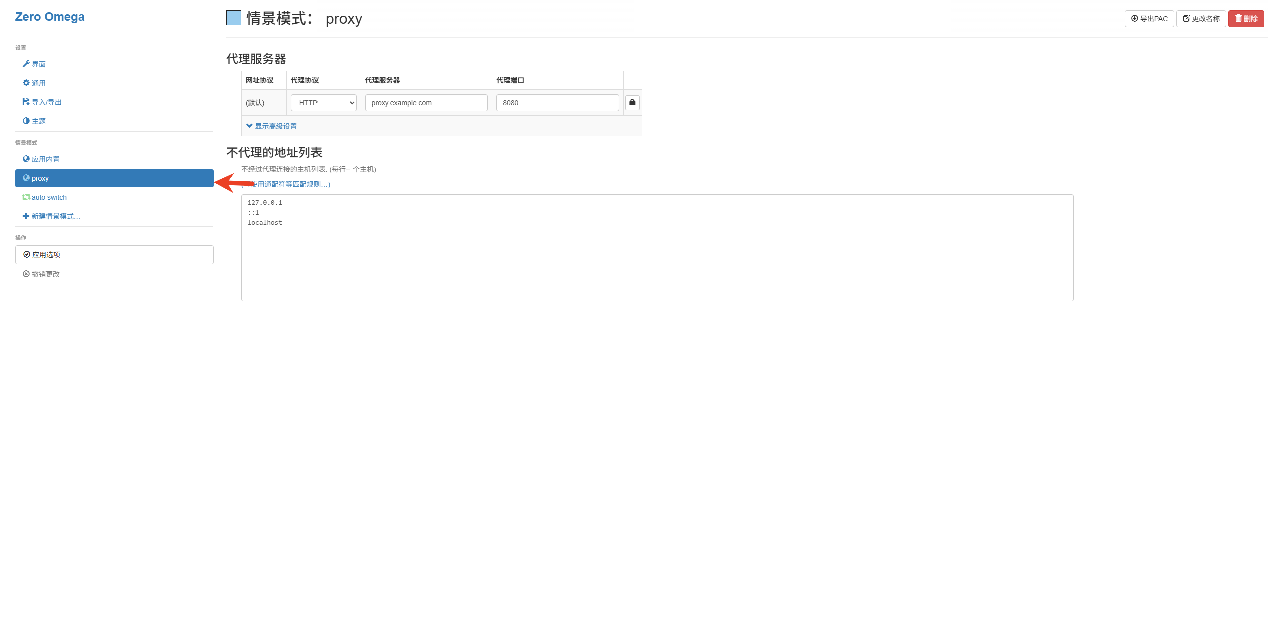 2.新建情景模式:安装后点击插件图标,进入 【选项】。点击左侧的 【新建情景模式】,取个名字。